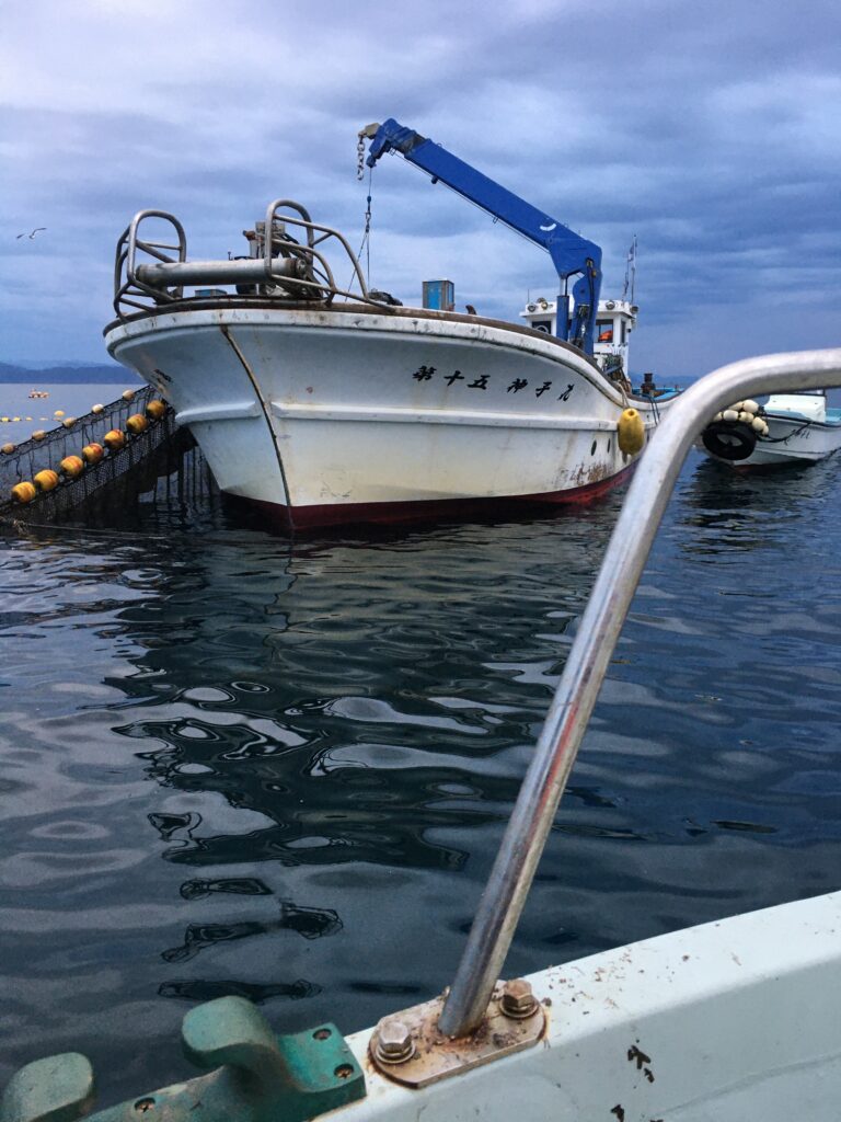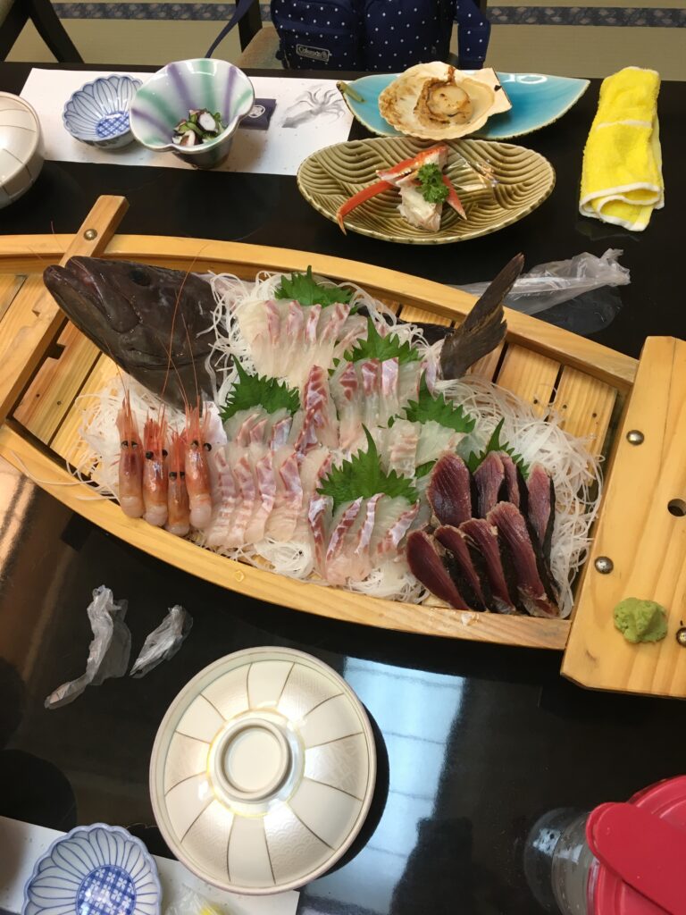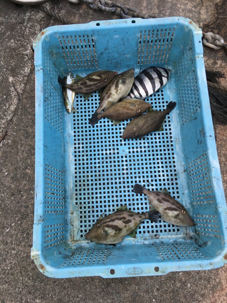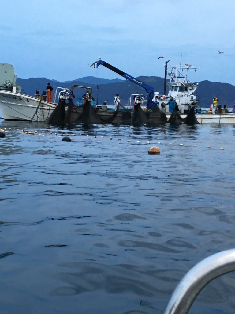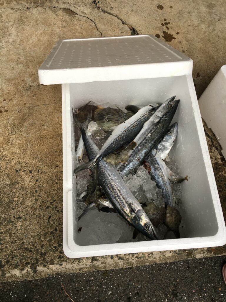 神子の定置網漁も間近で見学させていただき、セリ前の魚もいただきました。